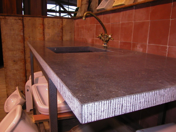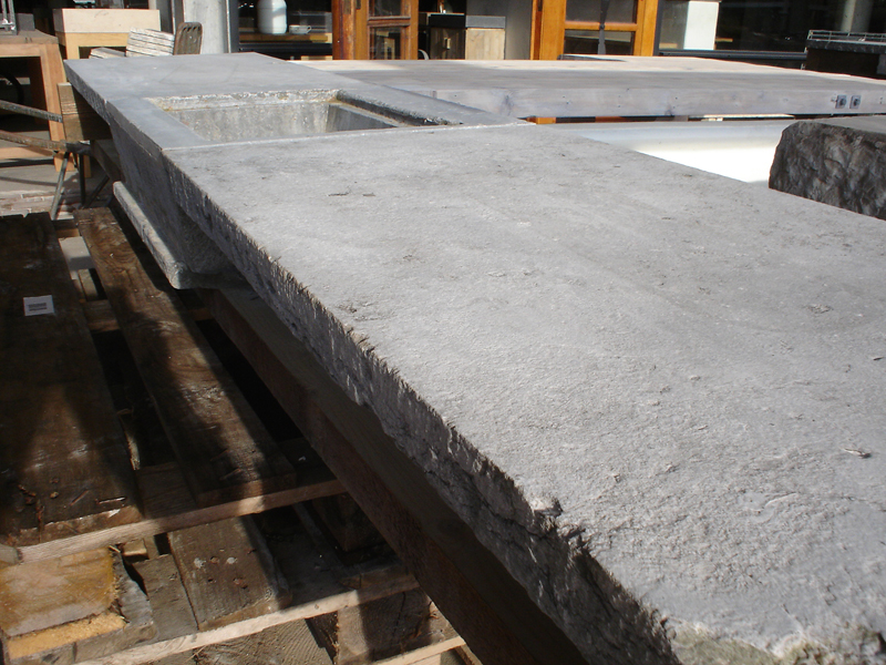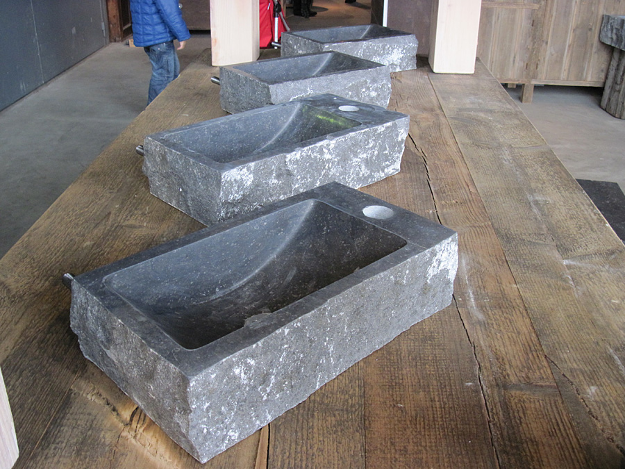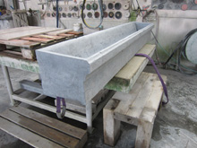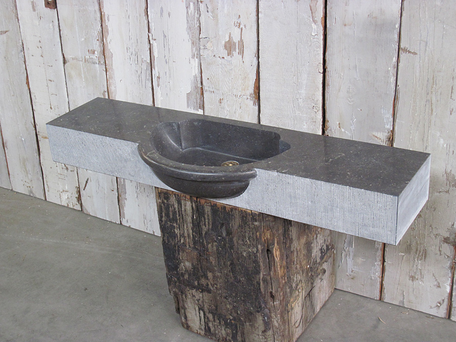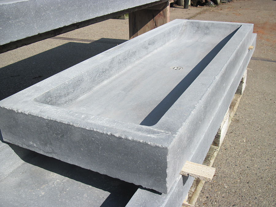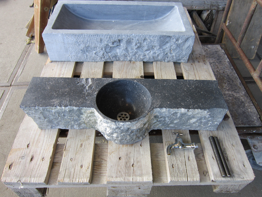 Belgisch hardstenen wasbakken compl. incl. muurbevestiging 180x50x10 / 124x43x10 cm.