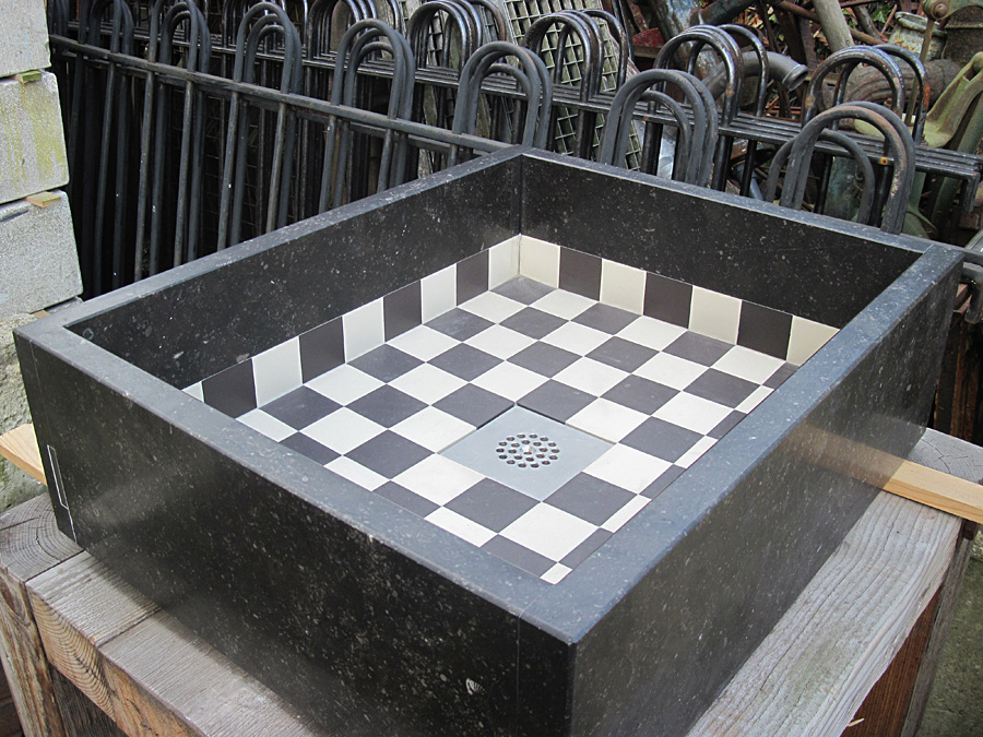 | Hardstenen gootsteenbak met tegeltjes 55x45x17 cm. |