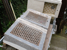 Belgisch hardstenen fontijn met gefreinde voorkant.
