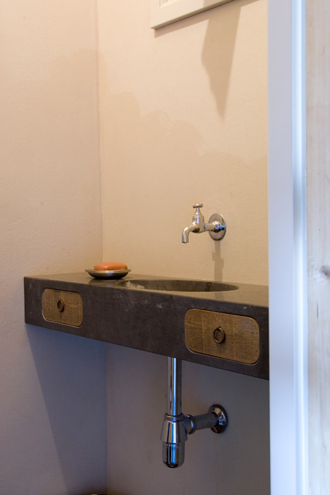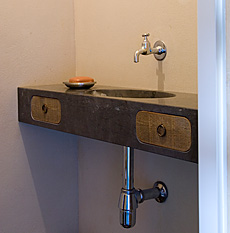 Hardstenen pompbak met messing kraan / 76x40x15 cm |