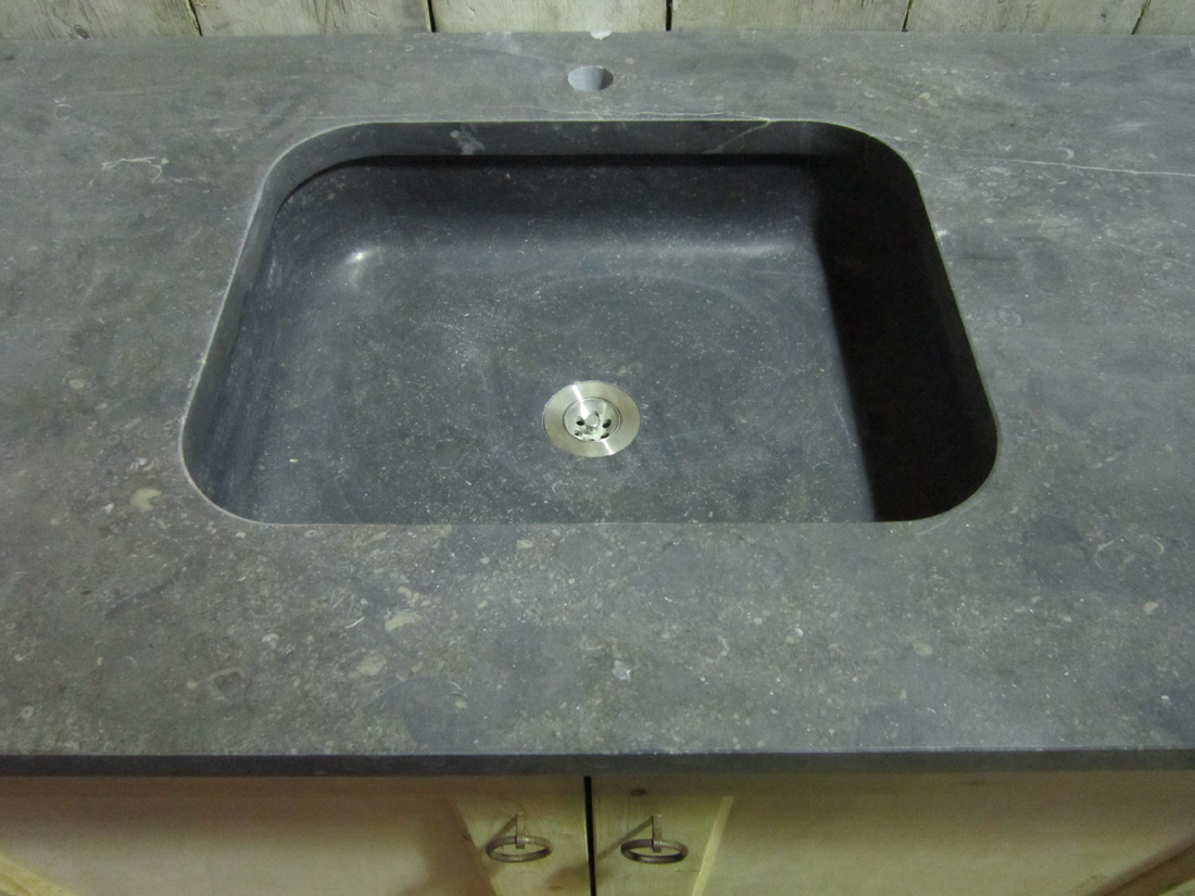 Blad Belgisch hardsteen met een massief onderlijmde wasbak
