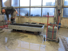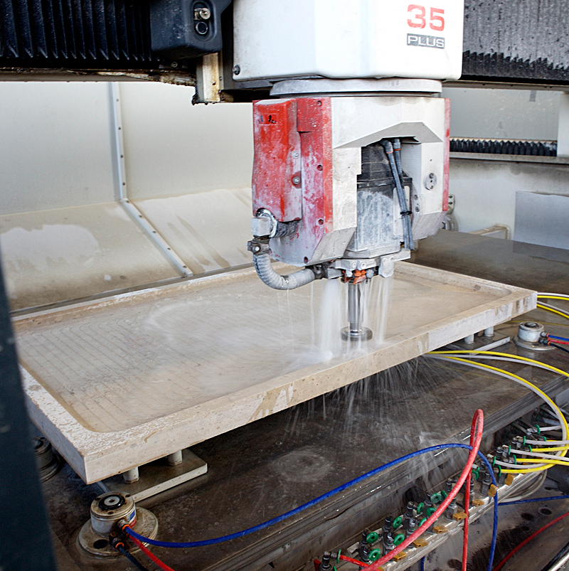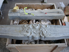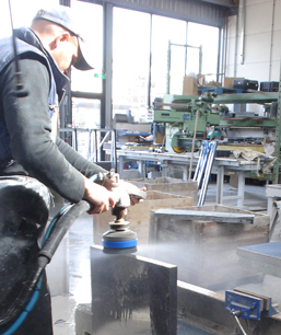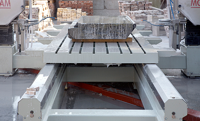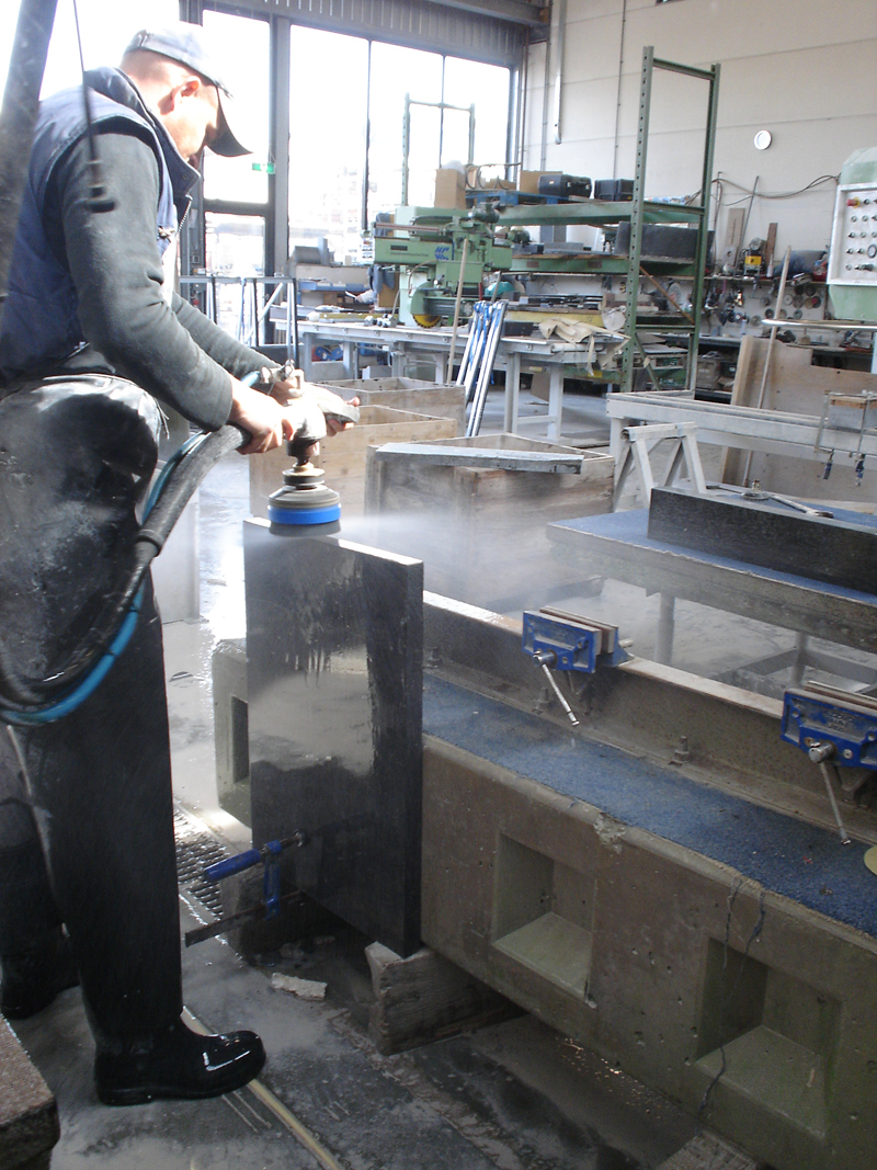 gezaagd uit oude blokken Belgisch hardsteen. |