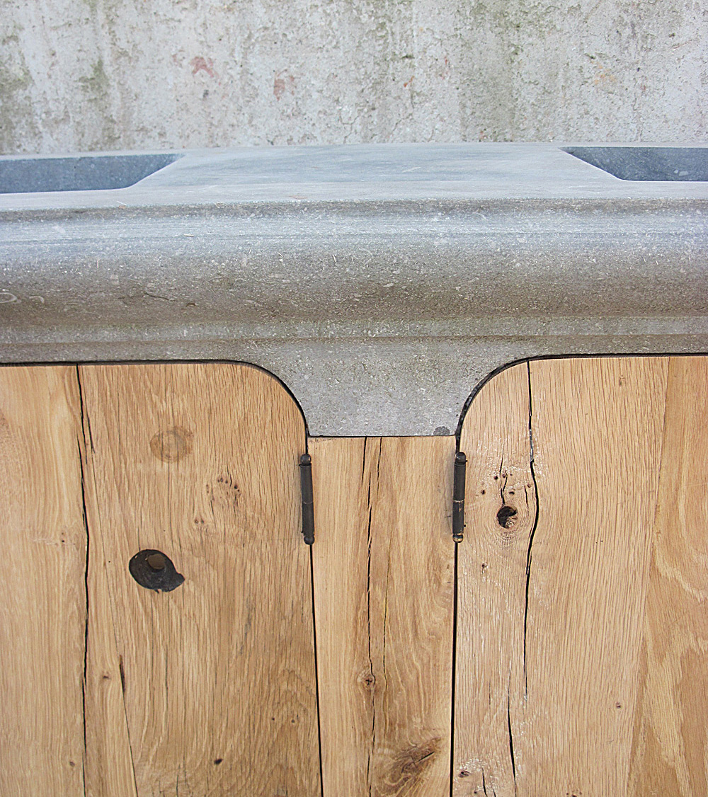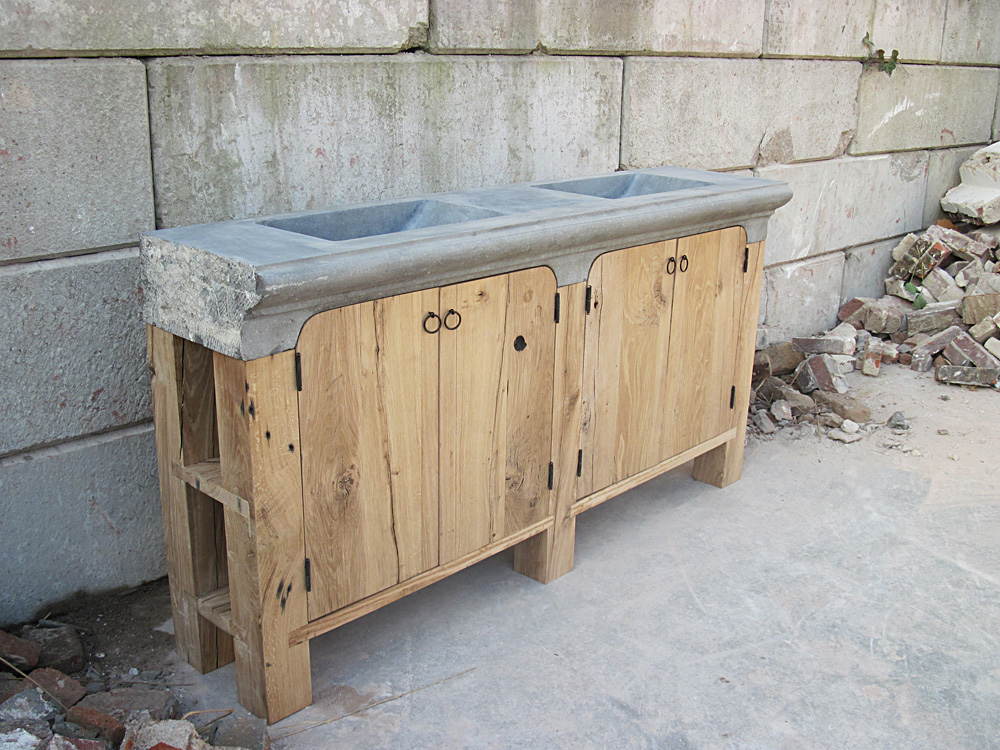 Meubel oud eiken / oude hardstenen raamdorpel 171x42x90 cm.